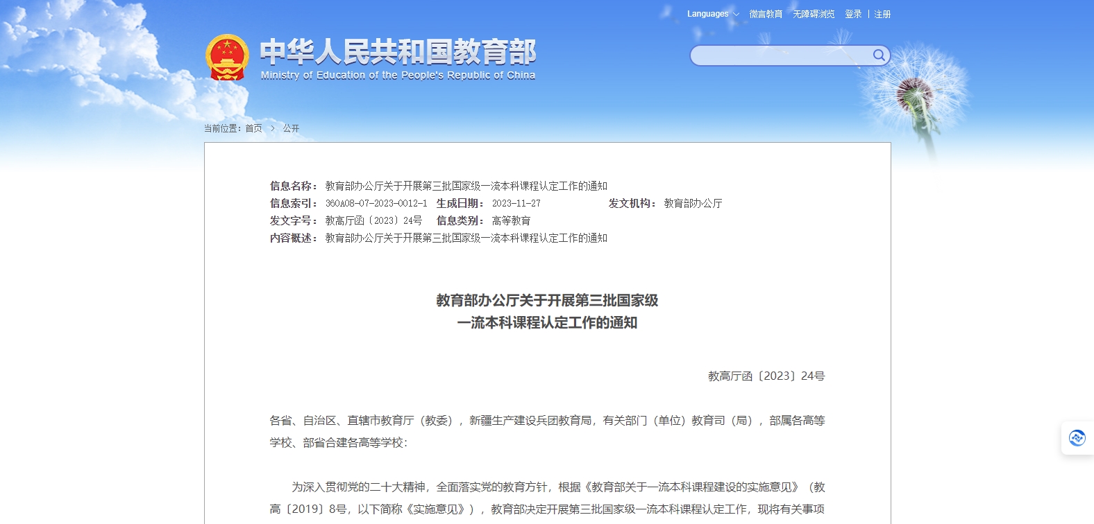 教育部辦公廳關(guān)于開(kāi)展第三批國家級 一流本科課程認定工作的通知