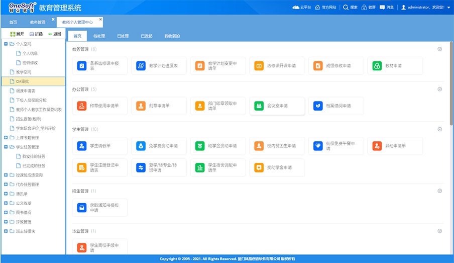 系統由原來(lái)的桌面級的管理系統轉變?yōu)槊嫦蛴脩?hù)提供服務(wù)的功能強大的企業(yè)級應用平臺。如工作報告、任務(wù)交辦、項目管理、工作任務(wù)管理、管理看板、學(xué)校知識庫、檔案管理等這些工具支撐日常工作,為教職工工作增效,為干部決策和管理賦能,可提大提升全員工作效率和學(xué)校管理水平。